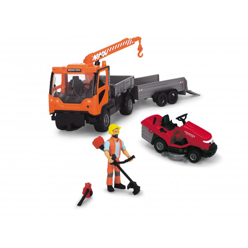 Przedstawiamy Państwu nową lawetę firmy Dickie. Pojazd świetnie sprawdzi się przy przewożeniu innych mniejszych samochodów, za pomocą znajdującego się z tyłu opuszczanemu podjazdowi oraz przyczepie.