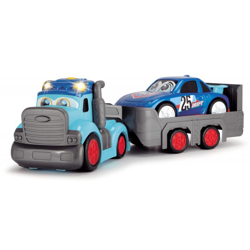 Dickie Happy - Ciężarówka z przyczepą i autem wyścigowym Światło Dźwięk