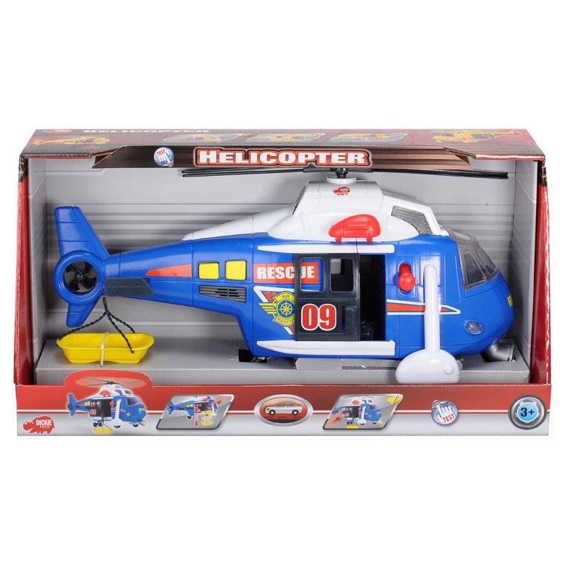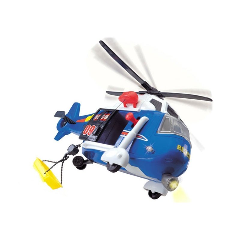 Wystarczy wezwanie a maszyna rusza na akcje ratunkową. Helikopter wyposażony jest m. in. w obrotowe śmigło, rozsuwane drzwi, ruchomy kosz ratunkowy oraz otwieraną przednią szybę. Dodatkowo sygnały świetlne i dźwiękowe sprawią, że zabawa będzie jeszcze atrakcyjniejsza!