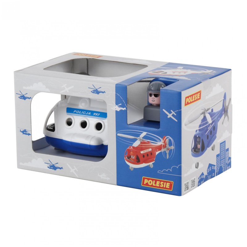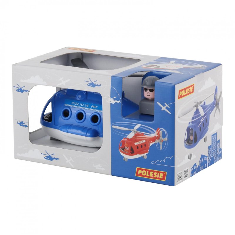 Śmigłowiec policyjny, który sprawi wiele radości każdemu dziecku, które lubi się bawić w pilota lub naśladować żołnierza. W zestawie znajduje się helikopter z ruchomym śmigłem i ruchomymi kołami oraz wyjmowana figurka pilota/żołnierza. Zabawka wykonana z ogromną starannością, z najwyższej jakości materiałów.