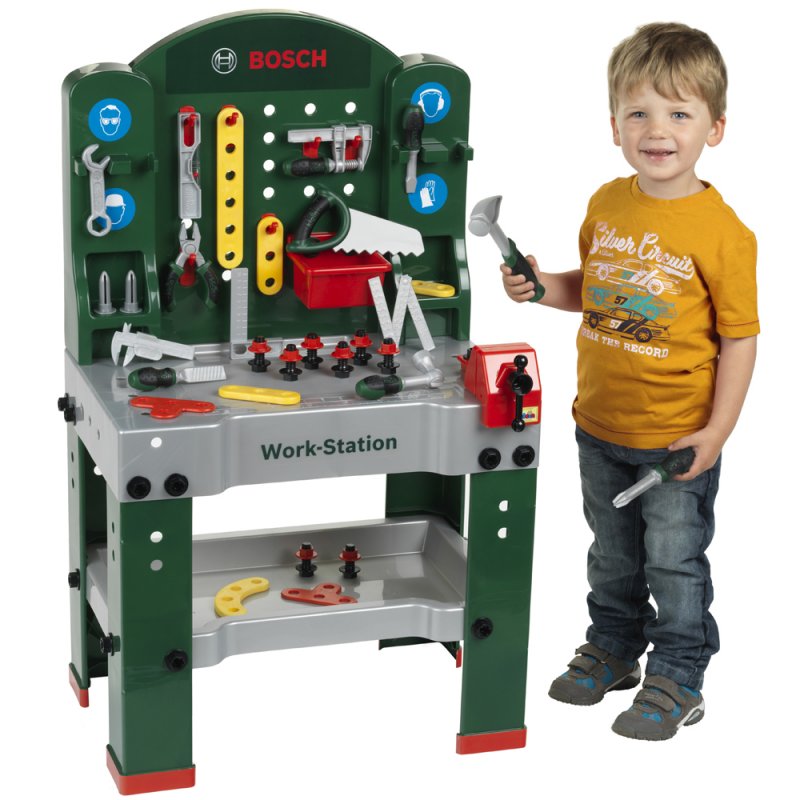 Rewelacyjny warsztat w wersji dla dzieci na licencji Bosch. Narzędzia wchodzące w jego skład są wiernymi kopiami faktycznie istniejących narzędzi marki Bosch.