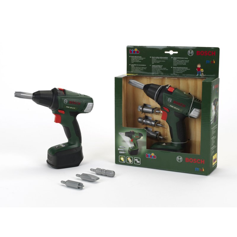 Wiertarko- wkrętarka dla dzieci na licencji Bosch od firmy Klein, cenionego producenta zabawek dla dzieci, to idealny pomysł na prezent. Bezprzewodowa wiertarko- wkrętarka zachowana jest w kolorystyce ciemnej zieleni z szarymi elementami. Taka wkrętarka z pewnością będzie stanowiła świetne uzupełnienie każdego warsztatu Małego Majsterkowicza. Na urządzeniu znajduje się duży, czerwony napis producenta BOSCH. Produkt został wyposażony w: