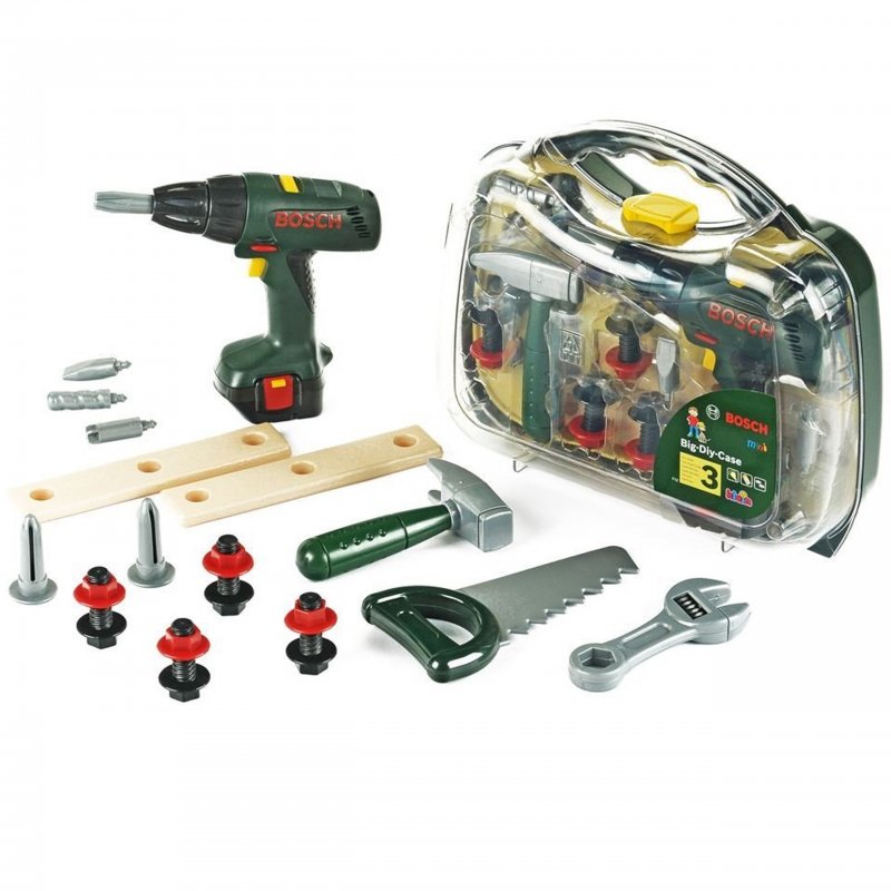 Skrzynka z narzędziami i wkrętarką na licencji Bosch dla dzieci, od firmy Klein.