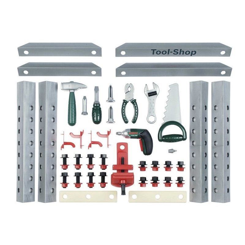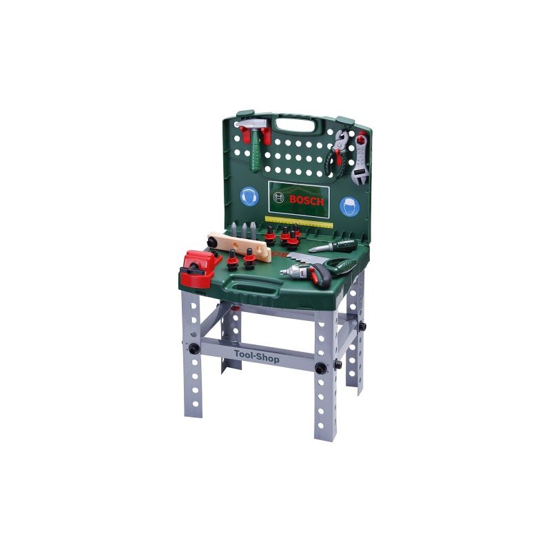 Wspaniały warsztat z narzędziami na licencji Bosch dla Twojego dziecka! W zestawie znajduje się wiele przydatnych narzędzi: piła, młotek, obcęgi, śrubokręt, klucz oraz mnóstwo innych elementów.