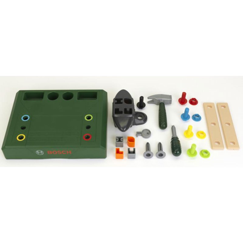 Wspaniały warsztat z narzędziami na licencji Bosch dla Twojego dziecka! W zestawie znajduje się wiele przydatnych narzędzi: piła, młotek, obcęgi, śrubokręt, klucz oraz mnóstwo innych elementów.