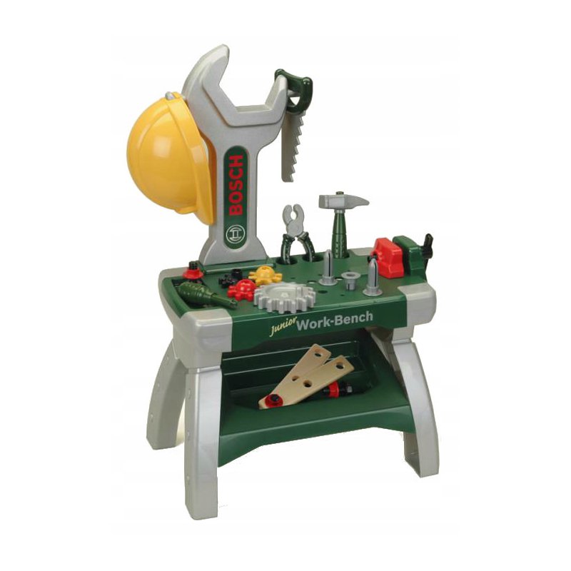 Warsztat Bosch junior został stworzony przez uwielbianą przez dzieci i docenianą przez rodziców niemiecką firmę Klein. Zestaw ten pochodzi z serii zabawek Bosch mini powstałej na licencji firmy Bosch, dlatego też narzędzia wchodzące w jego skład są wiernymi kopiami faktycznie istniejących narzędzi marki Bosch. Ten wspaniały zestaw z pewnością zachwyci każdego małego majsterkowicza.