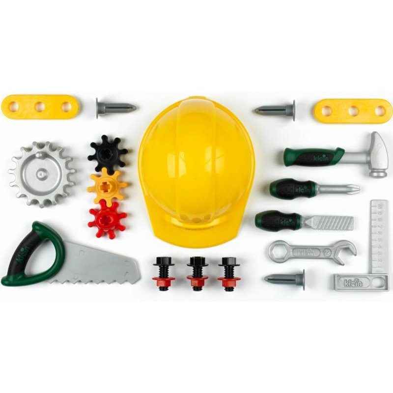 Zestaw narzędzi robotnika budowlanego na licencji Bosch, od firmy Klein, cenionego producenta zabawek dla dzieci.