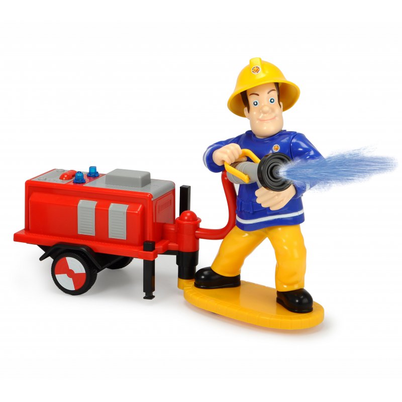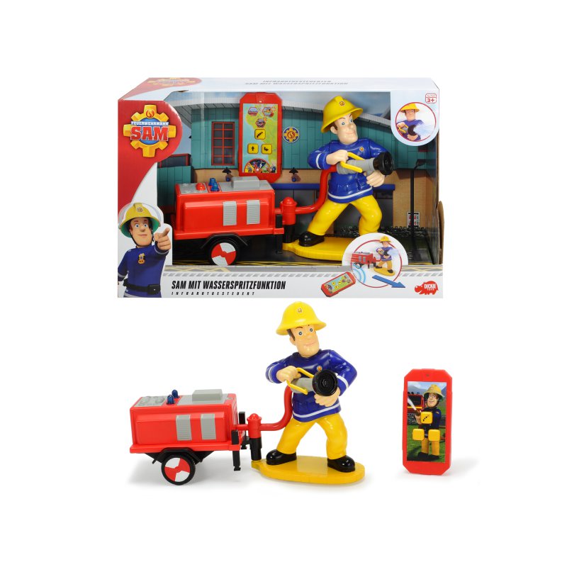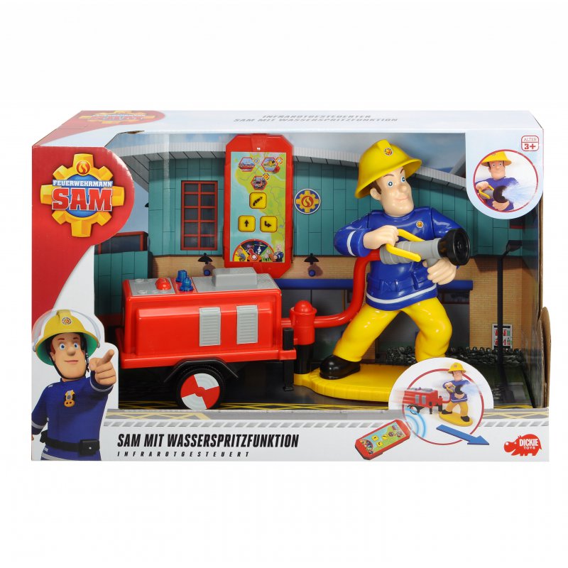 Figurka Strażaka Sama (wysokość około 21 cm) w żółto-granatowym stroju i żółtym kaskiem na głowie umieszczona została na podstawce. Zestaw stanowi doskonałe uzupełnienie do pozostałych zestawów Strażak sam Dickie, np: bazy Pontypandy z pojazdem Venus. Funkcja jazdy przód/tył oraz pryskania wodą.
