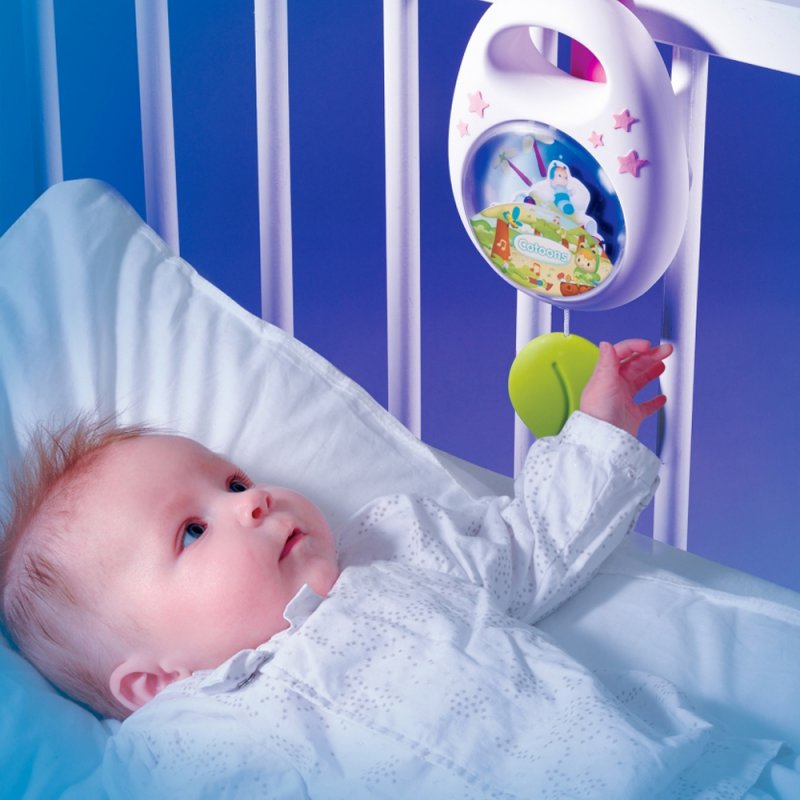 Działanie mechaniczne, nie potrzebuje baterii. Pozytywkę można przymocować do łóżka i do wózeczka.