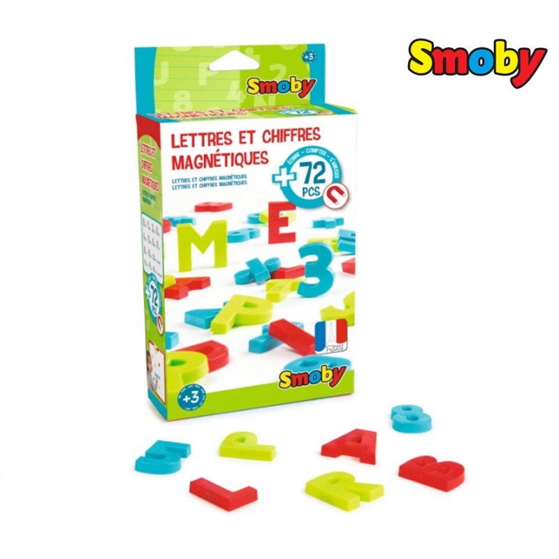 72 sztuki plastikowych magnetycznych cyferek i literek, wyprodukowanych przez znaną i lubianą markę Smoby. Pomogą Twojemu maluchowi stawiać pierwsze kroki w poznawaniu liter oraz cyferek. Zestaw zawiera także znaki dodawania, mnożenia, odejmowania i dzielenia.