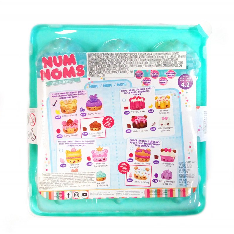 Witaj w świecie Num Nomsów! Jaki jest przepis na absolutnie fantastyczną zabawę? Czego potrzeba, by stworzyć niezwykłą fuzję doznań zapachowych? Filiżanka słodyczy, łyżeczka zaskoczenia – tak powstają zabawne Num Nomsy. Łącz Numsy i Nomsy i twórz najbardziej zaskakujące efekty smakowe, wizualne i zapachowe! Num Nomsy to kolekcja uroczych stworków. Każdy z nich ma apetyczny, śliczny zapach. Część to wielobarwne, słodkie nakładki, inne kryją w sobie błyszczyki do ust, pieczątki, albo poruszają się samodzielnie na kółeczkach. Zabawa to nie tylko kolekcjonowanie. Buźki, którymi obdarzono Num Nomsy inspirują do tworzenia historyjek, budowania scenek. Te niezwykłe stworki podbiją serca dzieci i sprawią, że nabiorą apetytu na zabawę!