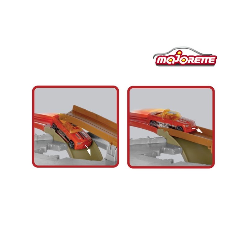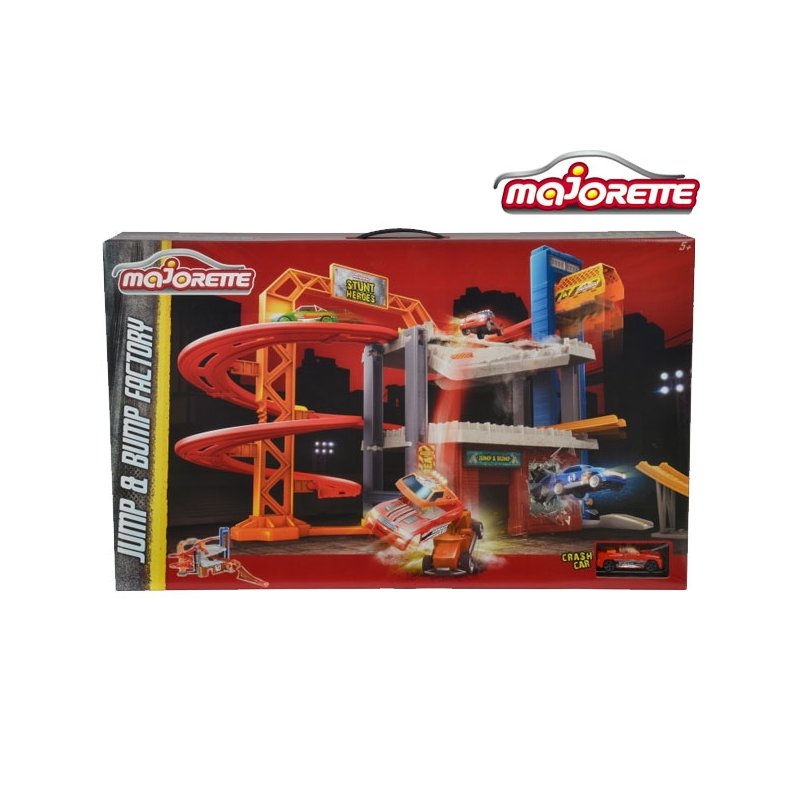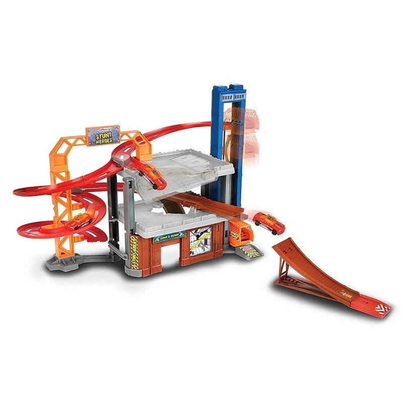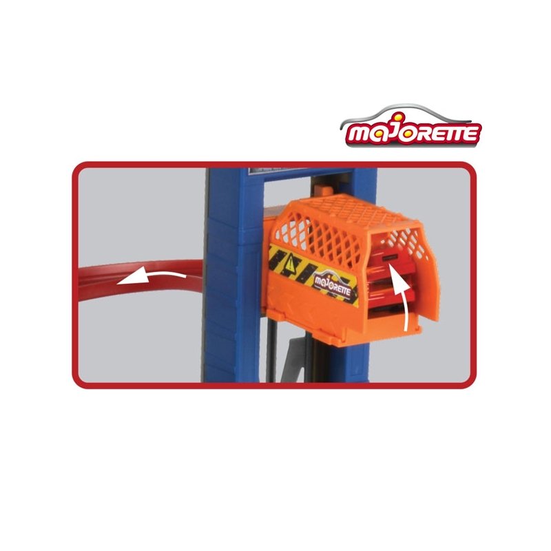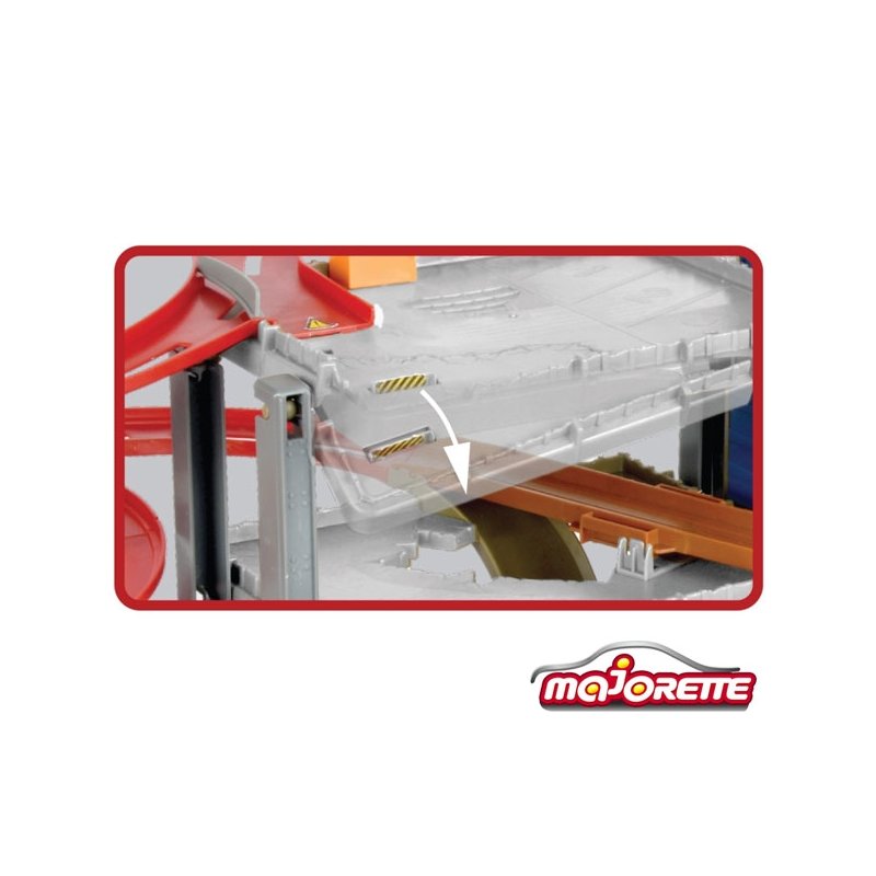 Wokół piętrowego garażu rozwija się długi,zakręcony zjazd. Dzięki rampom i miejscom do lądowania pojazdy mogą wykonywać iście kaskaderskie ewolucje. Na szczyt garażu przeniesie Nas winda.