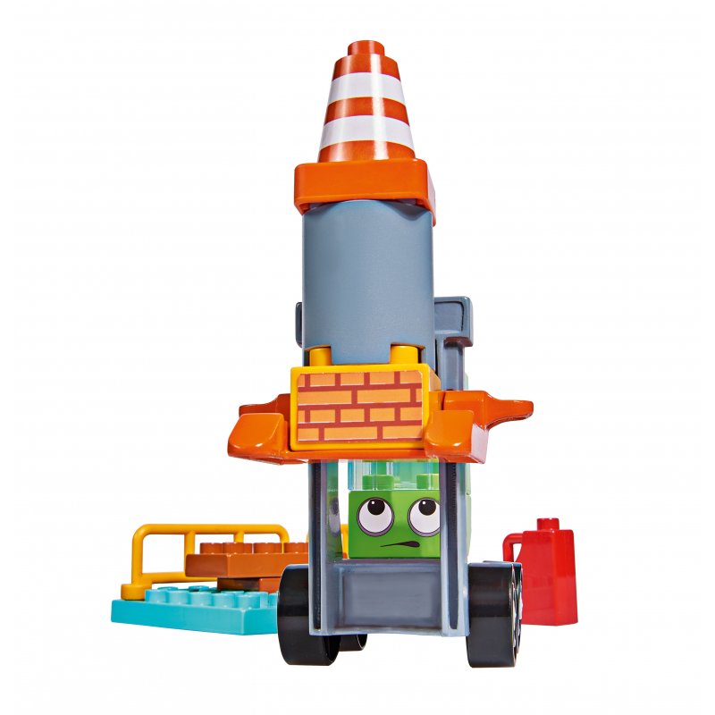 Zestaw klocków wózek widłowy Boba składa się z 16 elementów i umożliwia ułożenie podnośnika z kółkami oraz platformy oraz palety. W pudełku także klocek z naklejką cementu, pachołek oraz kanister. Klocki są wykonane z tworzywa wysokiej jakości z dużym nasyceniem kolorów.