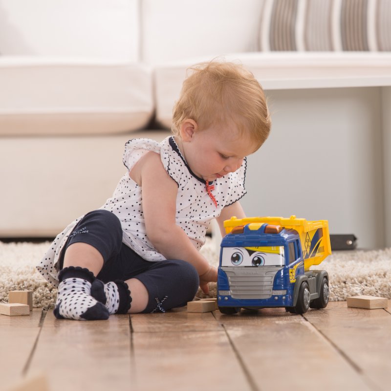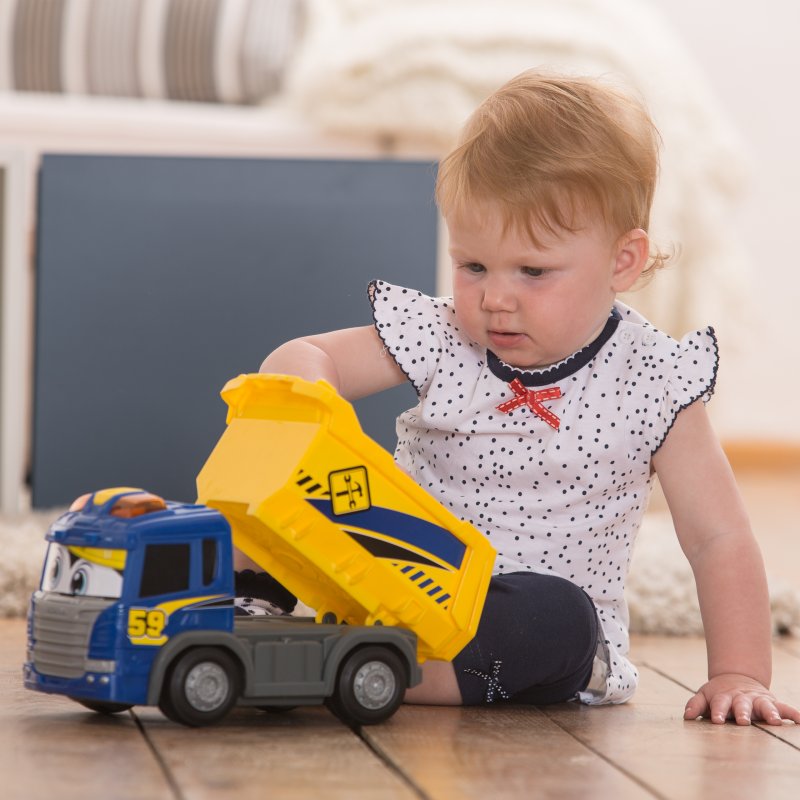 Wywrotka na licencji Scania od firmy Dickie, cenionego producenta zabawek dla dzieci, wyposażona została w światło i dźwięk co z pewnością uatrakcyjni zabawę.