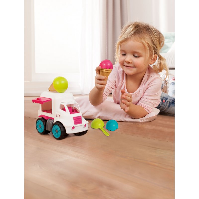BIG Power Worker Mini to seria pojazdów dla maluchów o ergonomicznych kształtach fantastycznie sprawdzających się podczas zabawy. Ciężarówka ta należy do tej grupy produktów. Samochód lodziarnia Power Worker Mini przeznaczony jest zarówno do zabawy w domu, jak i na zewnątrz. Nowa ciężarówka pozwoli na kreatywną zabawkę. Auto wyposażone jest w ruchome elementy oraz lody - którymi maluszek może się także bawić w piasku, używając ich jako foremek.