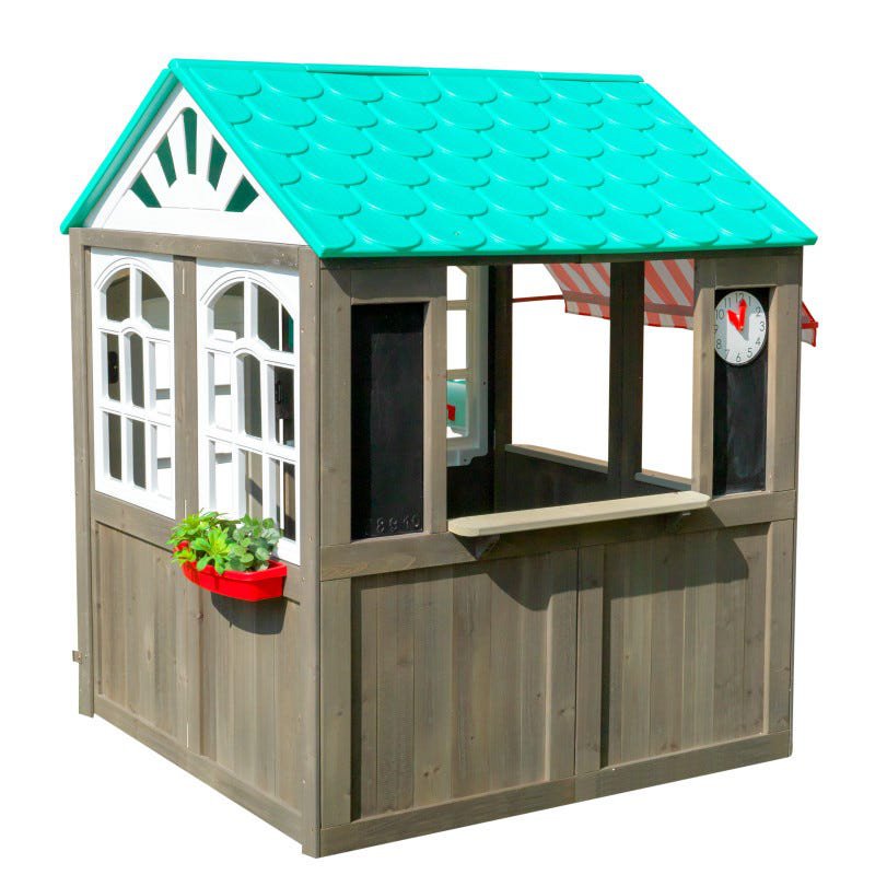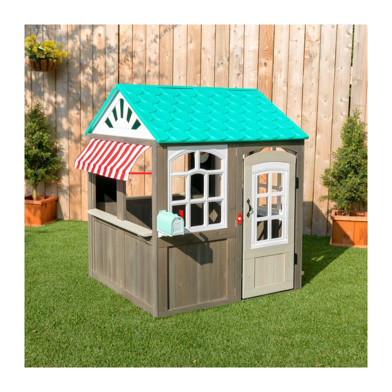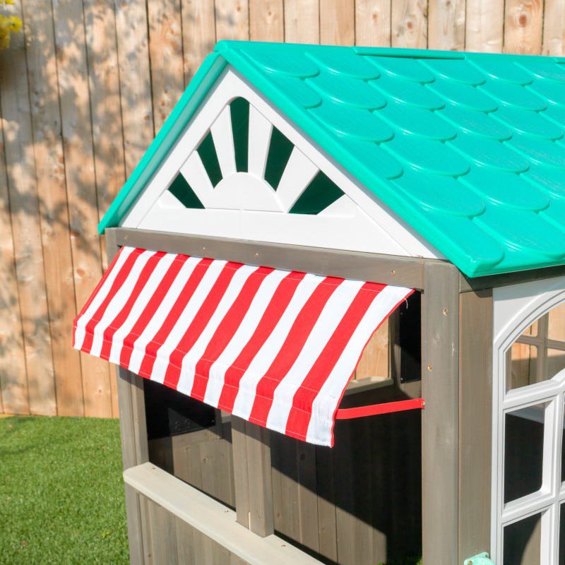Wykonany z drewna, tworzywa i metalu domek dla dzieci to świetna propozycja dla każdego dziecka w wieku od 3 do 10 lat. Idealnie sprawdzi się zarówno dla chłopca, jak i dla dziewczynki. Domek imituje nadmorską chatkę z kawiarenką. Posiada okienko z daszkiem, przez które można serwować zimną lemoniadę, lub inne orzeźwiające napoje i pyszne potrawy.