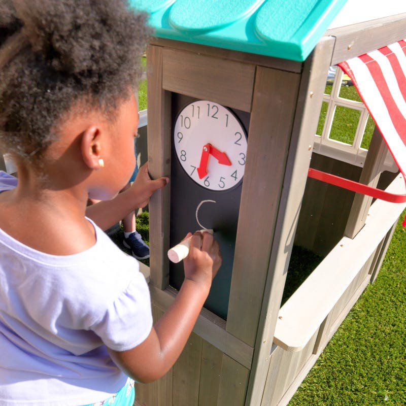 Domek KidKraft Coastal Cottage wyposażony jest w wiele elementów, które urozmaicają zabawę: