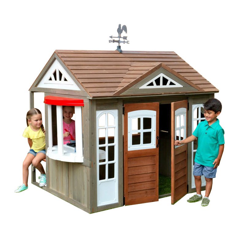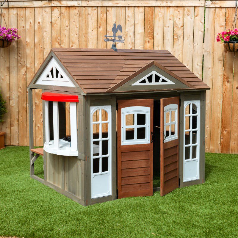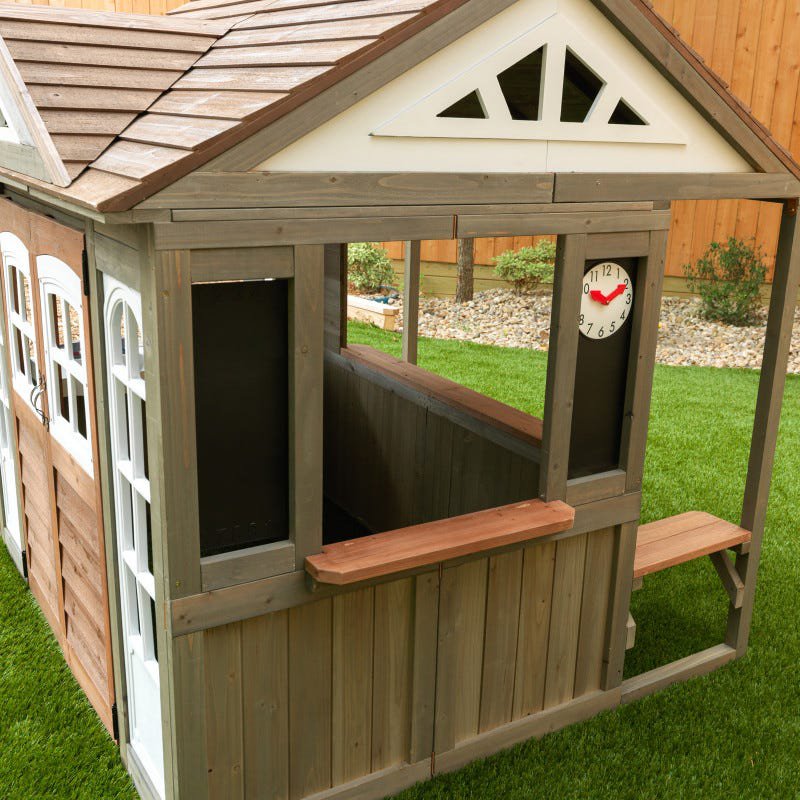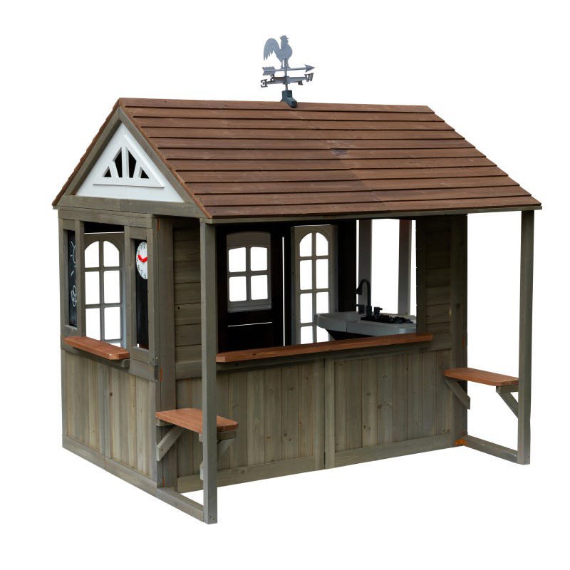 Drewniany domek ogrodowy dla dzieci marki KidKraft. Jest to świetna zabawka do ogrodu, która pozwoli dziecku na spędzanie czasu w swoim ulubionym zakątku. Domek pozwala na bardzo wiele aktywności dzięki licznym akcesoriom i elementom dodatkowym, takim jak: kuchnia dla dzieci, tablice kredowe, zegar z ruchomymi wskazówkami, szerokie okienko do serwowania.