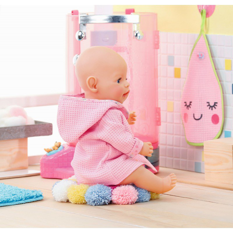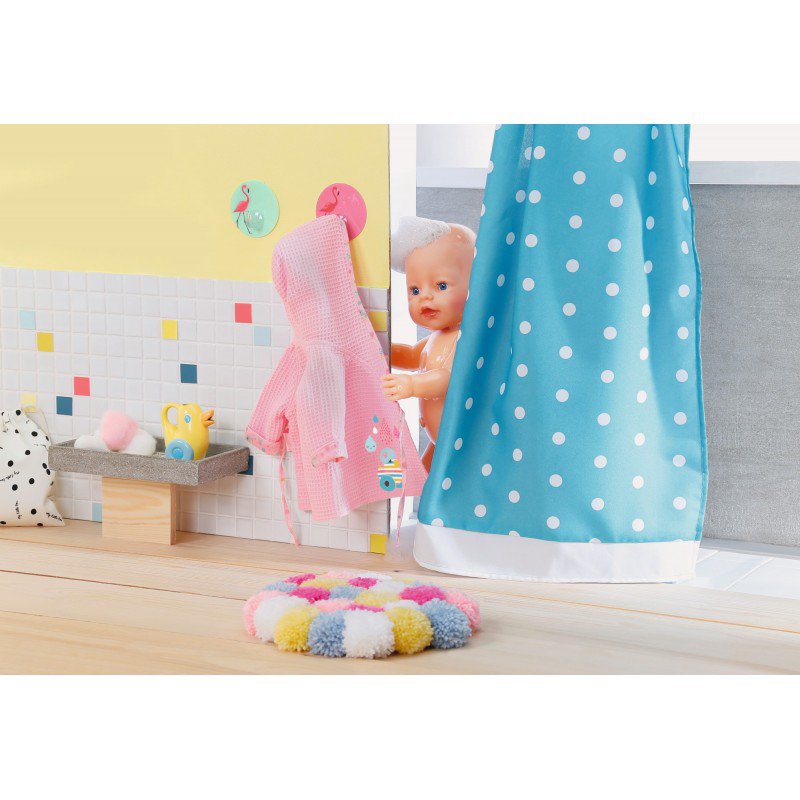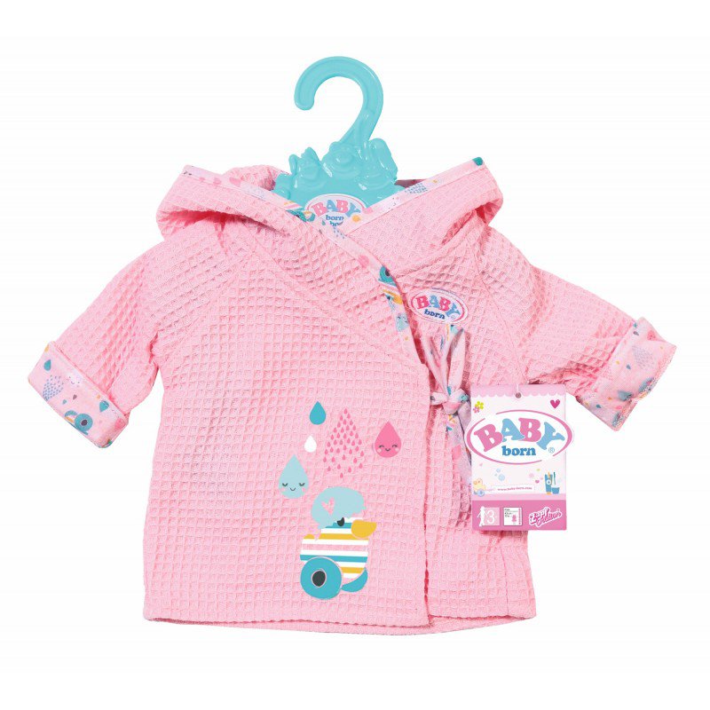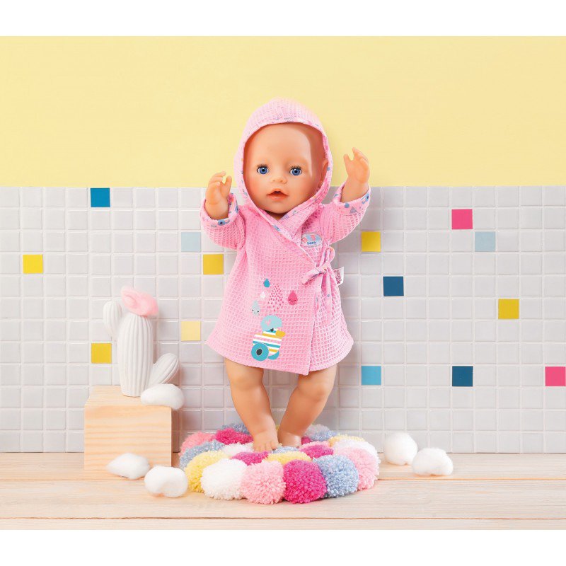 Lalka Baby Born ma mnóstwo akcesoriów i ciuszków w swojej szafie. Znajdziemy ubranka na różne okazje, a teraz także wprowadzić do garderoby można uroczy szlafroczek, który możemy założyć naszej lali po kąpieli.