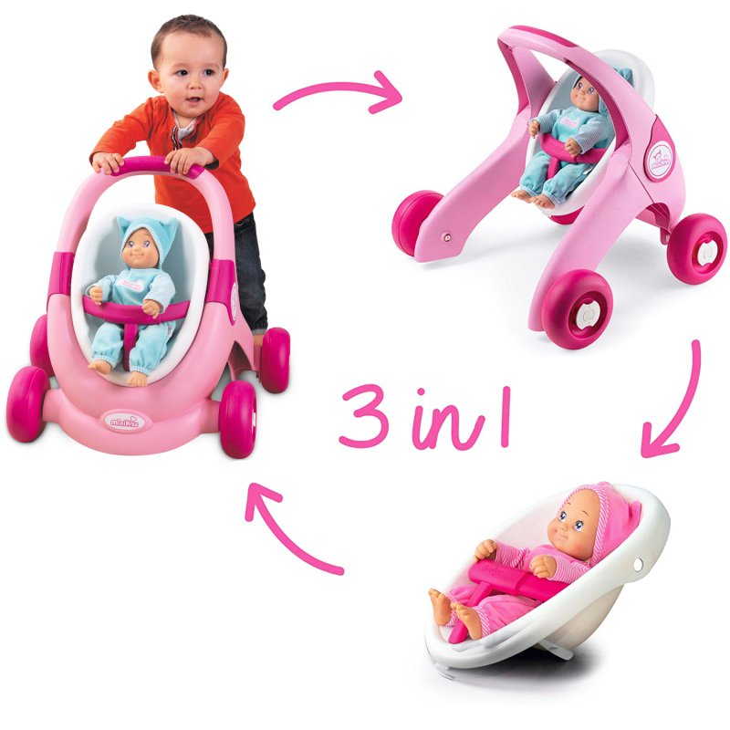 Smoby MiniKiss Chodzik Pchacz 3w1 Wózek + Lalka