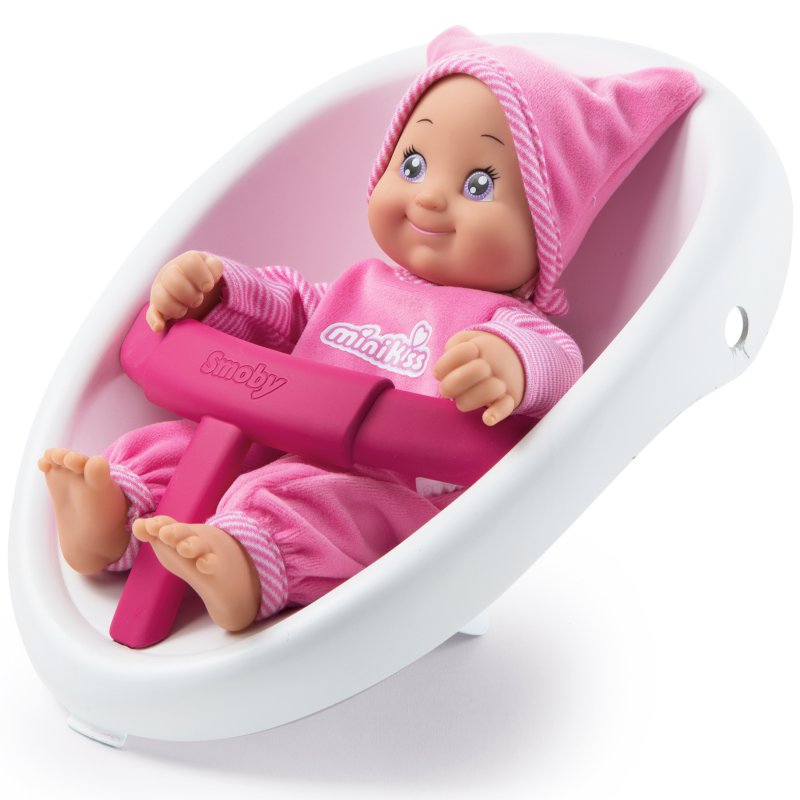 Seria Smoby MiniKiss to wysokiej jakości zabawki, które skierowane są dla maluchów od 12 miesiąca życia. Przyjemna, żywa kolorystyka, obłe kształty i ciekawe propozycje zabawy to podstawowe cechy tej serii. Chodzik dla maluszka, który jest również wózkiem dla lalki z dwoma pozycjami siedziska.
