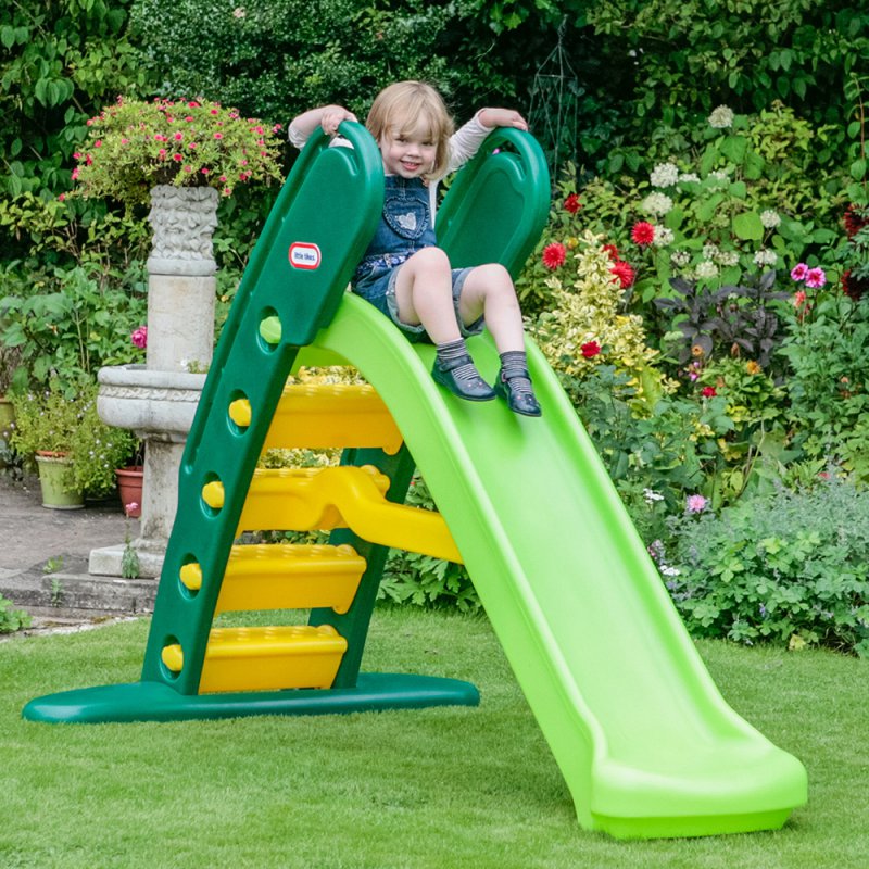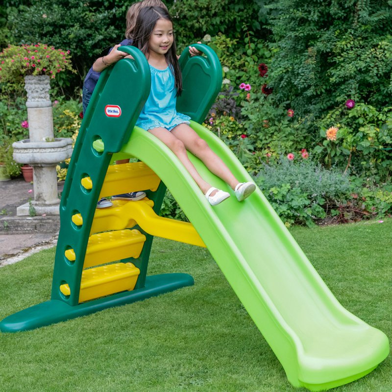 Zjeżdżalnia dla dzieci została wyposażona w ślizg o długości 180 cm. Posiada wysokie ścianki boczne i zaokrąglone krawędzie, umożliwiające wygodną i bezpieczną zabawę. Została wyposażona również w nowoczesny kształt stopni, wbudowane uchwyty, specjalnie wyprofilowane oparcie oraz szeroką, stabilną podstawę. Zjeżdżalnie można złożyć w celu wygodnego przechowywania. Plastikowa zjeżdżalnia ogrodowa Little Tikes to idealny wybór dla dzieci w wieku od 3 lat.
