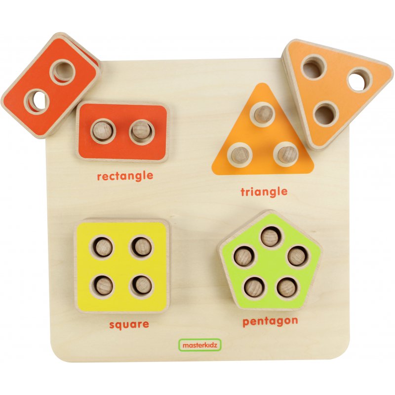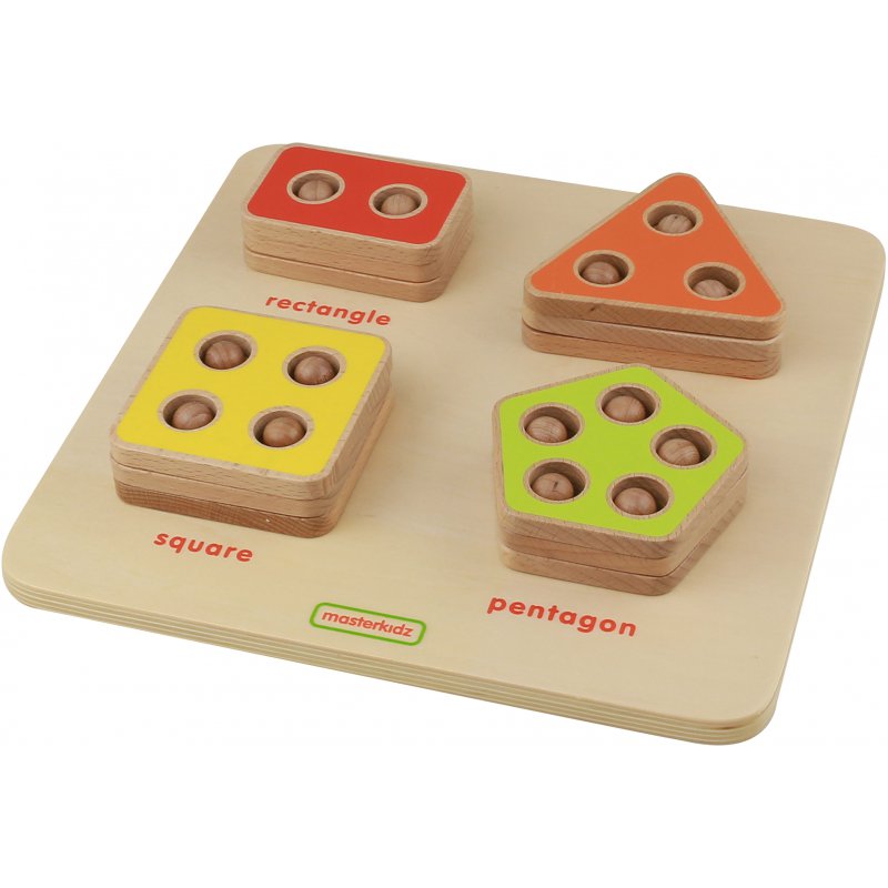 Wykonany z drewna kolorowy sorter kształtów marki Masterkidz to świetna zabawka edukacyjna, dzięki której dziecko pozna nazwy różnych figur geometrycznych, oraz ich charakterystyczne cechy. Jednocześnie, zabawka może być używana także do nauki matematyki. Każda z figur odpowiada konkretnej ilości kołeczków, więc można je łączyć w kombinacje i wykonywać w ten sposób działania matematyczne.