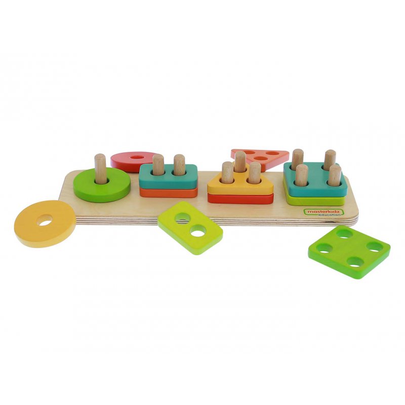 Cudowna drewniana zabawka edukacyjna, która świetnie sprawdzi się w rękach każdego dziecka. Ma na celu rozwinięcie umiejętności motorycznych, oraz zdolności logicznego myślenia. Dziecko, bawiąc się taką zabawką, musi użyć swojego umysłu, by dopasować klocki do pasujących kołeczków. Zadanie wydaje się proste, ale we wczesnej edukacji takie zabawy mają ogromne znaczenie.