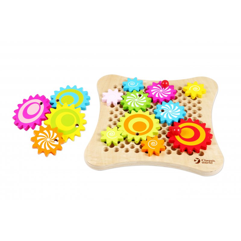 Jeśli przekładnie będą dobrze ułożone, kręcąc jednym kołem uda się poruszyć wszystkie elementy! Poprzez tę fantastycznie pomyślaną zabawę dziecko rozwinie swoją koncentrację, koordynację ręka- oko, kreatywność oraz zdolność logicznego myślenia.
