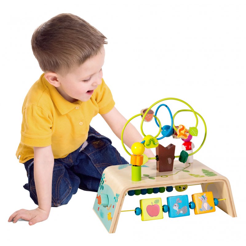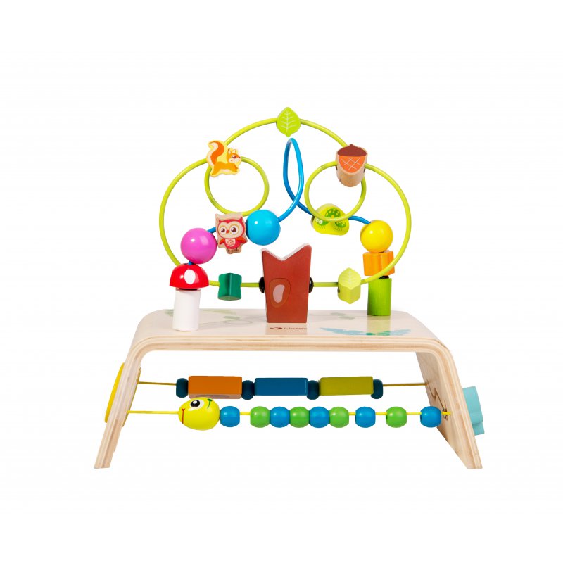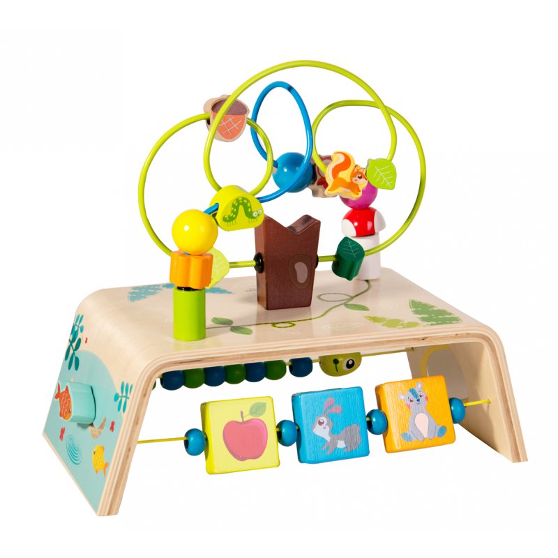 Na metalowych kolorowych prętach znajdują się piękne drewniane koraliki, którymi dziecko może przesuwać w dowolny sposób, ćwicząc przy tym precyzję ruchów palców i dłoni. Drewniane klocki do przesuwania to rzeczy związane z motywem lasu.